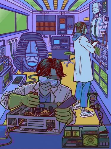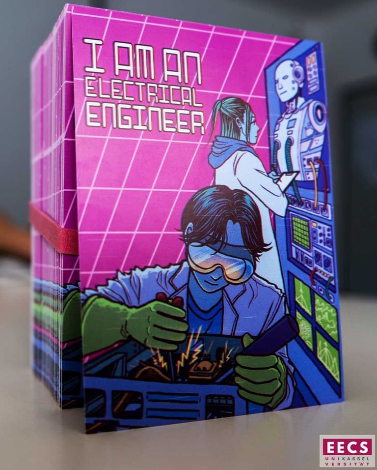 Eine Auftragsarbeit von 2021 der Universität Kassel im Fachbereich Elektrotechnik/Informatik. Angefragt wurden 2 Postkarten, welche die Fachbereiche repräsentieren inkl. Science-Fiction Easter Eggs.