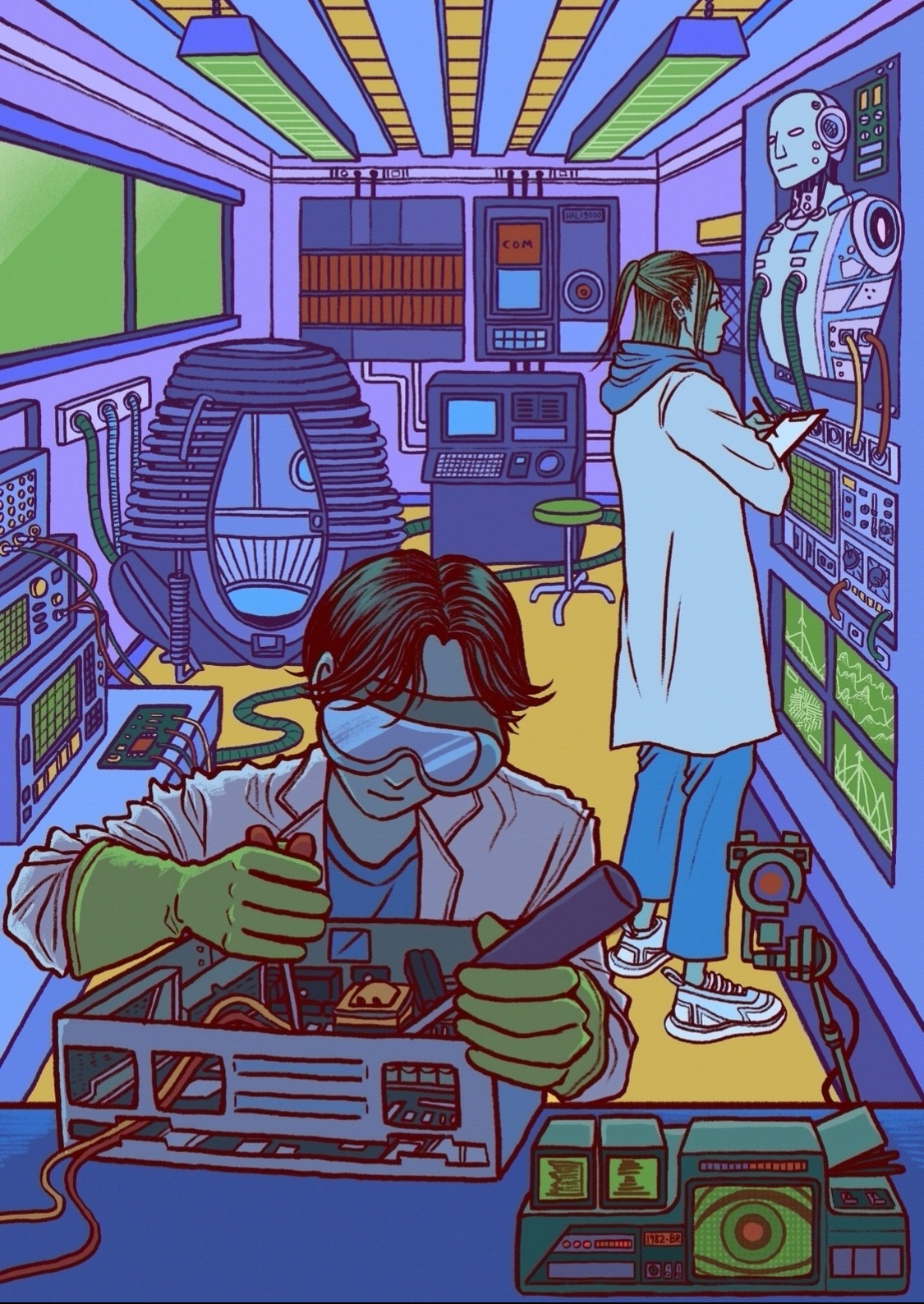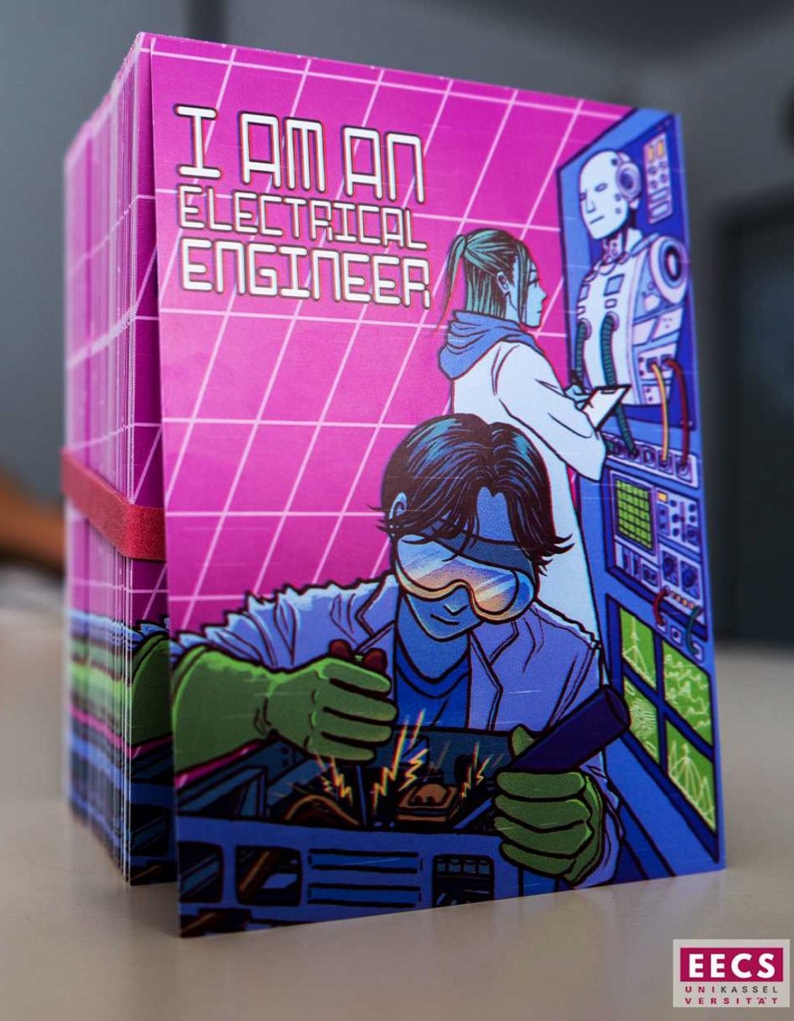 Eine Auftragsarbeit von 2021 der Universität Kassel im Fachbereich Elektrotechnik/Informatik. Angefragt wurden 2 Postkarten, welche die Fachbereiche repräsentieren inkl. Science-Fiction Easter Eggs.