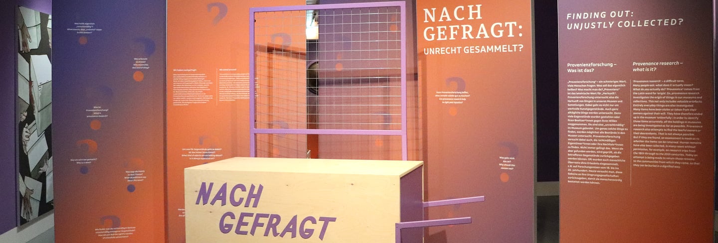 Woher kommen eigentlich die Objekte, die Museen ausstellen? Wem haben diese Dinge einmal gehört? Wie sind sie ins Museum gelangt? Diesen Fragen widmet sich die Sonderausstellung. ‚Nachgefragt‘. Die Ausstellung beschäftigt sich mit Fragen der Provenienzforschung, also der Herkunftsgeschichte von Objekten in Museen und Sammlungen Südniedersachsens. (Quelle)