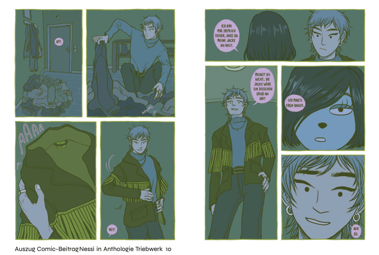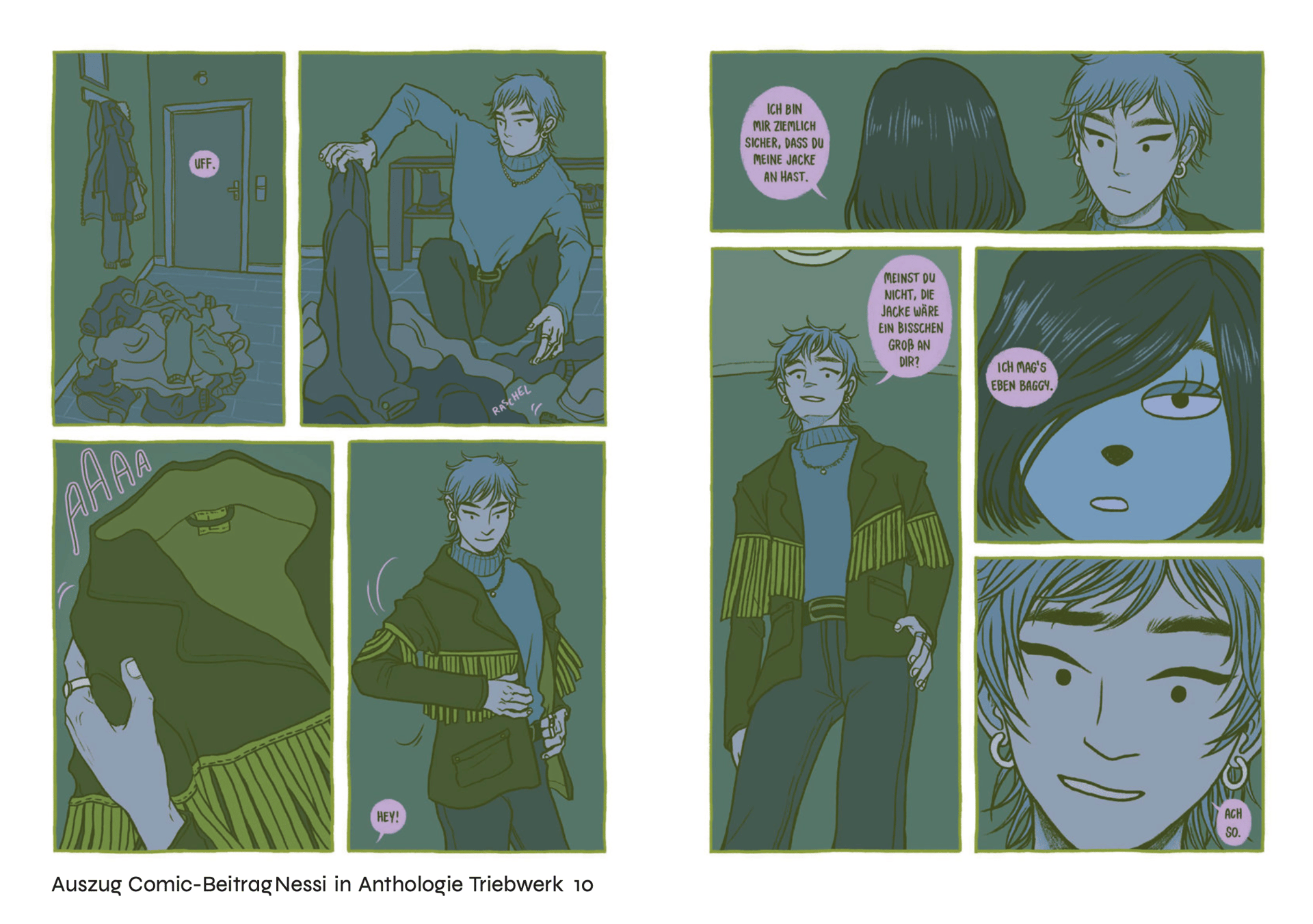 Kurzcomicbeiträge in der Comic-Anthologie "Triebwerk" welches seit 2017 beim Verlag Rotopol erscheint.